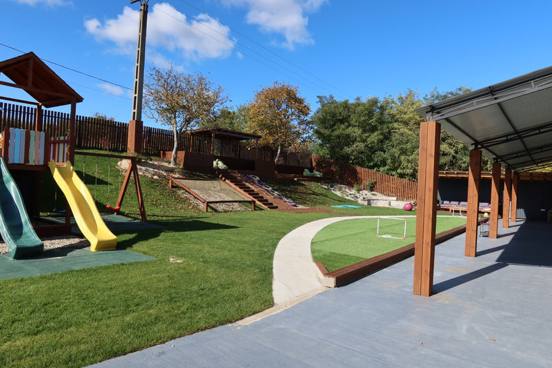 Peste 1000 mp de spațiu exterior pentru joacă liberă, activități în aer liber și petreceri outdoor.”